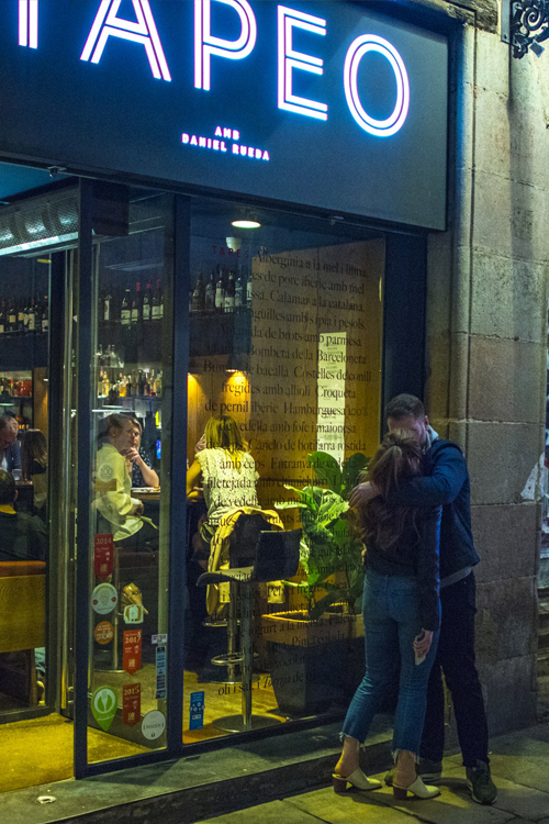 Tapeo es un restau-rante de cocina de mercado, sencilla y cercana, donde se elaboran las más suculentas tapas con calidad y honesti-dad. Cuidamos el mejor producto, y en su carta te ofrecemos una gran varie-dad de tapas. Daniel Rueda es el creador y alma de Tapeo y hemos con-seguido que la imaginación y creativi-dad de nuestras tapas combinen con algo que consideramos imprescindible: que sean muy buenas.